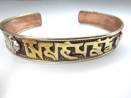 Three Metal Mantra Bracelet Copper Brass White Metal Nepalese