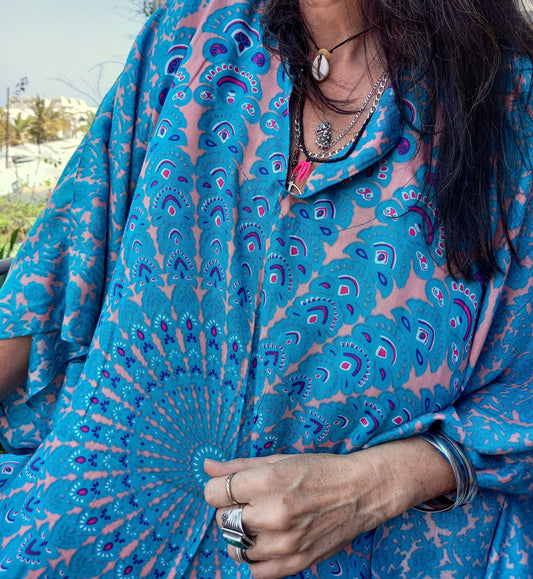 Ladies Viscose Mandala Peacock Kaftan with Tassels
