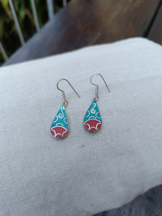 Nepalese Tear Drop In Lay Detailed Earrings.