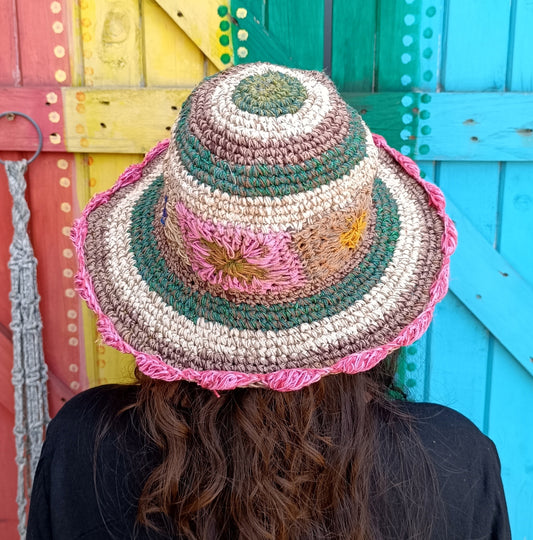 Crochet Hemp and Cotton Mix Hippie Wired Hats Colourful Flowers