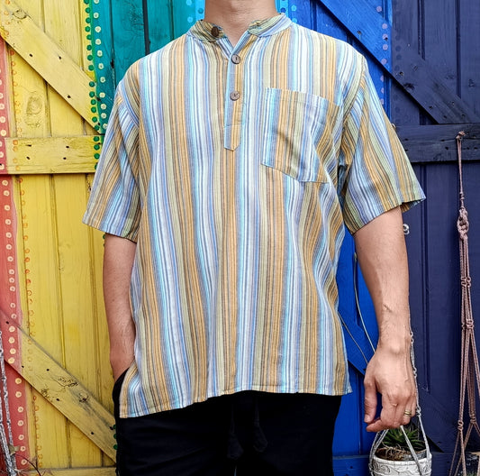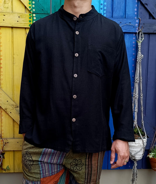 Cotton Hippie Men's Shirts Khaddar Kurta 3 Button Long Sleeve Shirt.