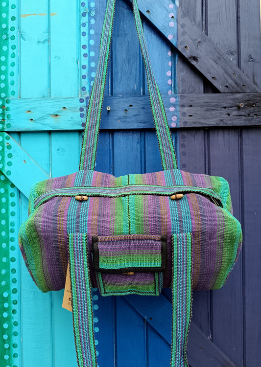 Funky Hippie Hand Loomed Nepalese Cotton Travel Bag (Duffle/Tog Bag) - Green, Purple, and Blue - MEDIUM