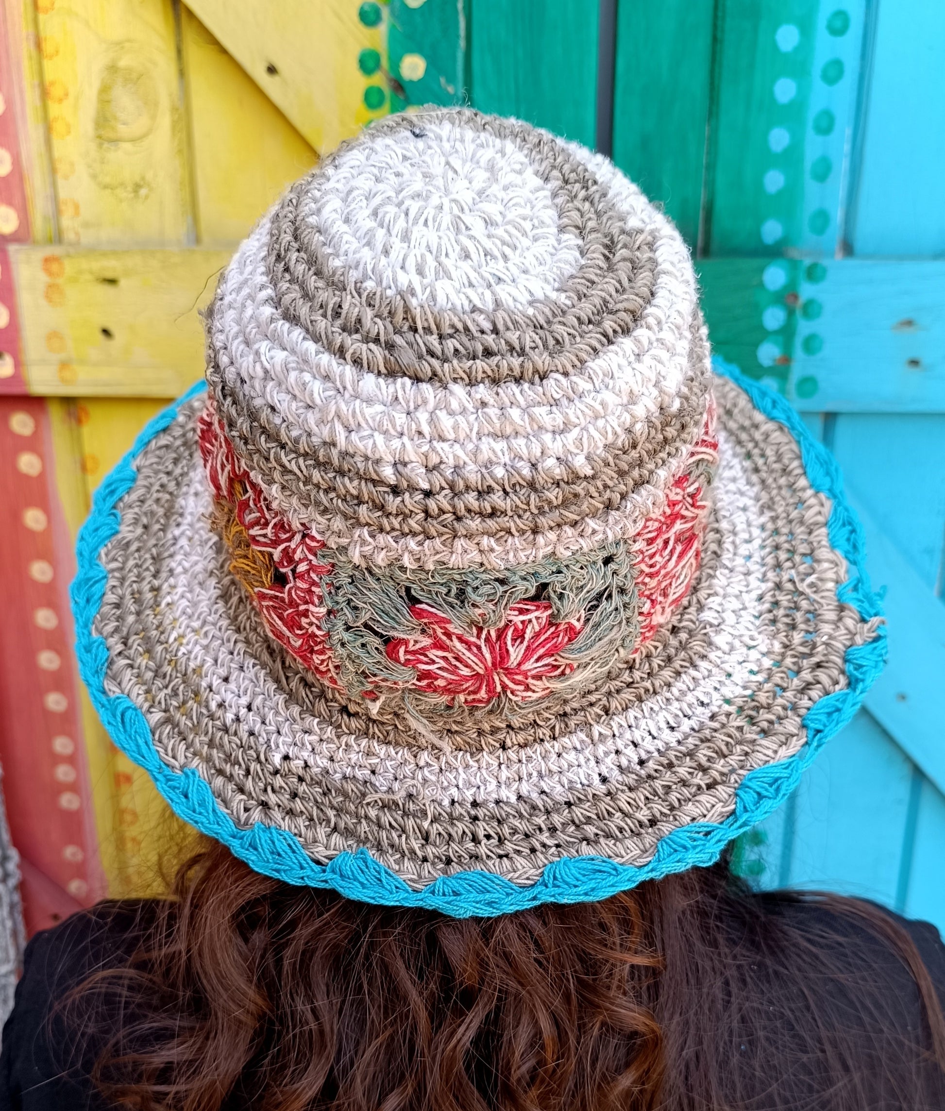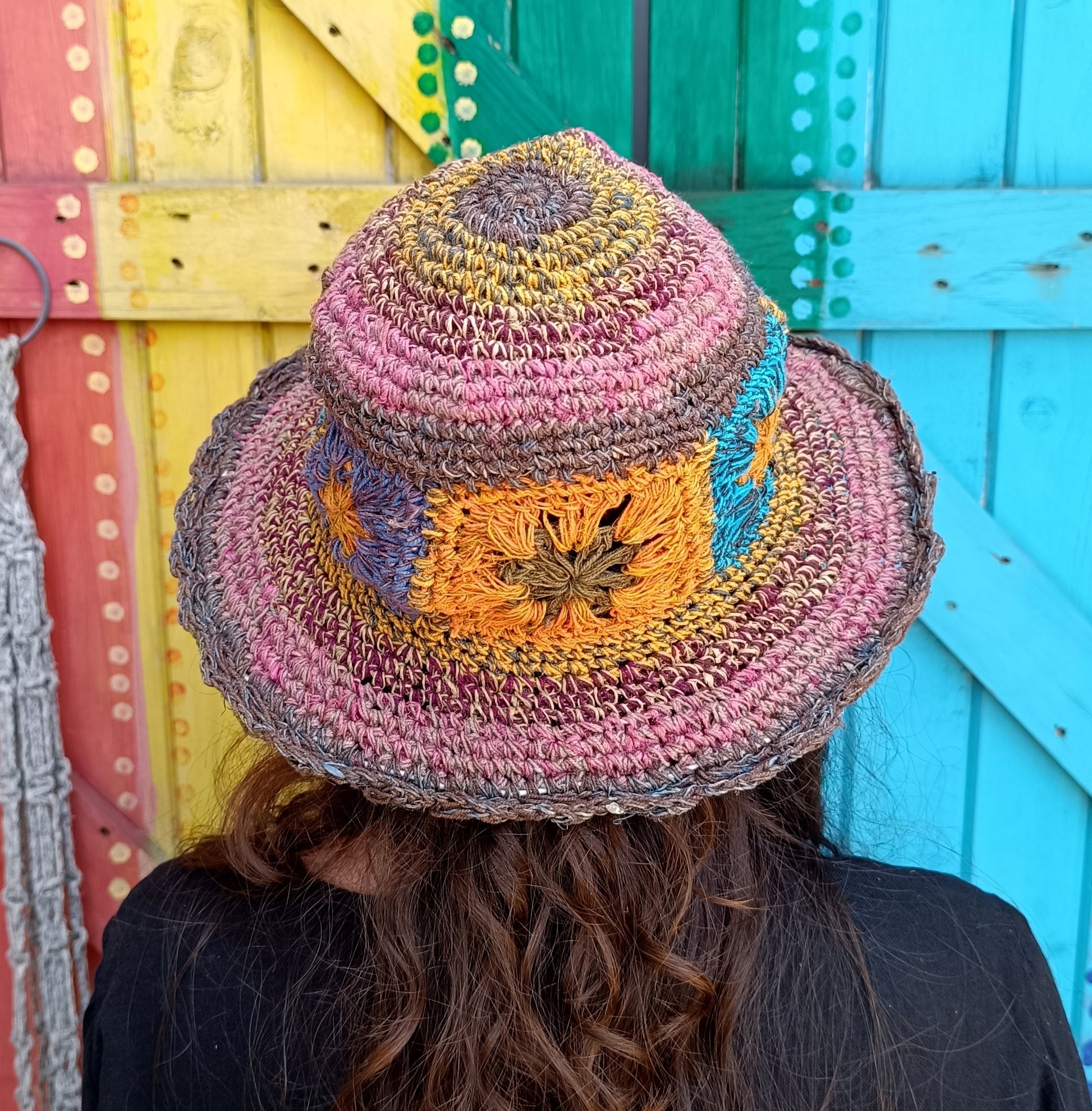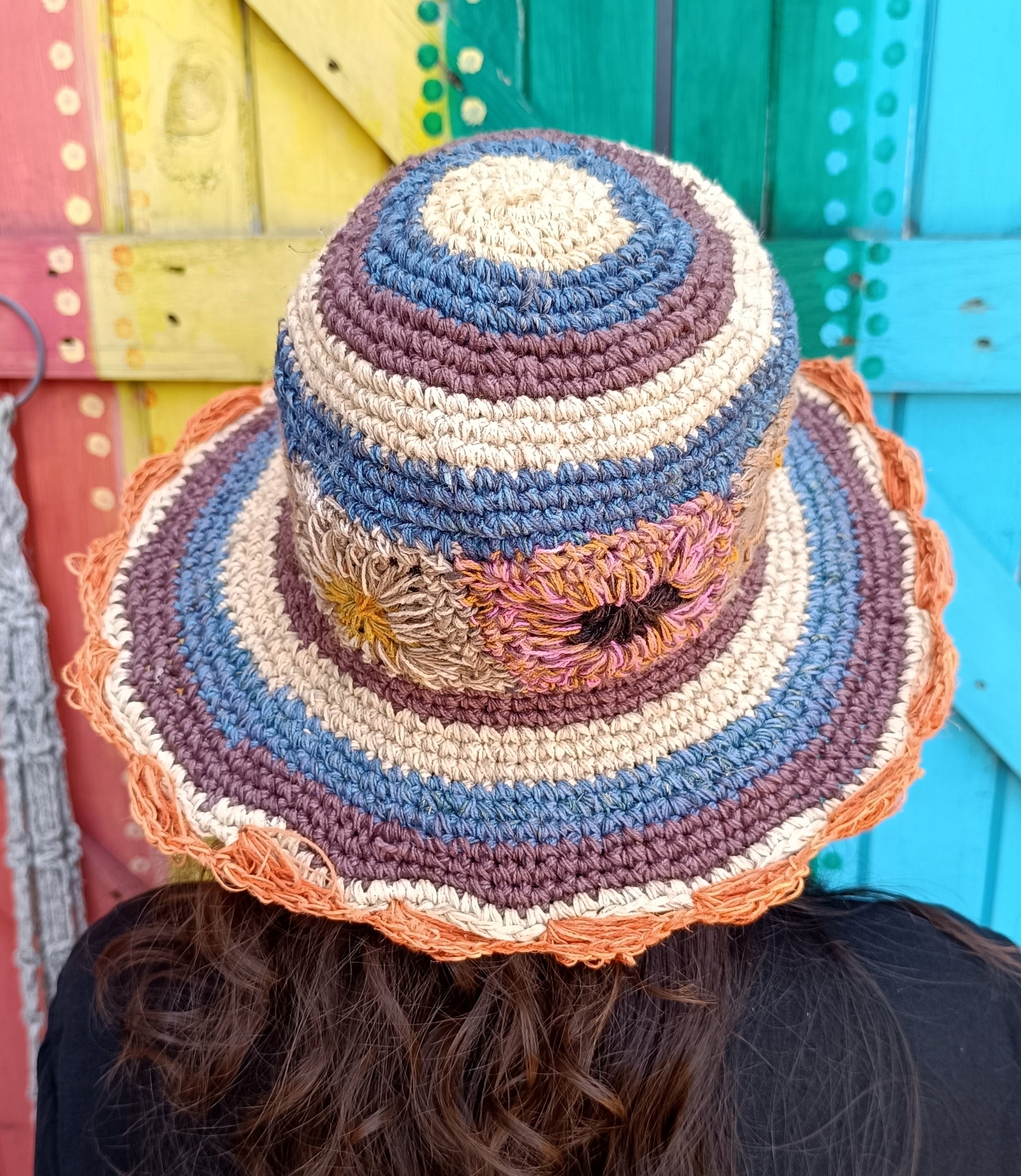 Crochet Hemp and Cotton Mix Hippie Wired Hats Colourful Flowers