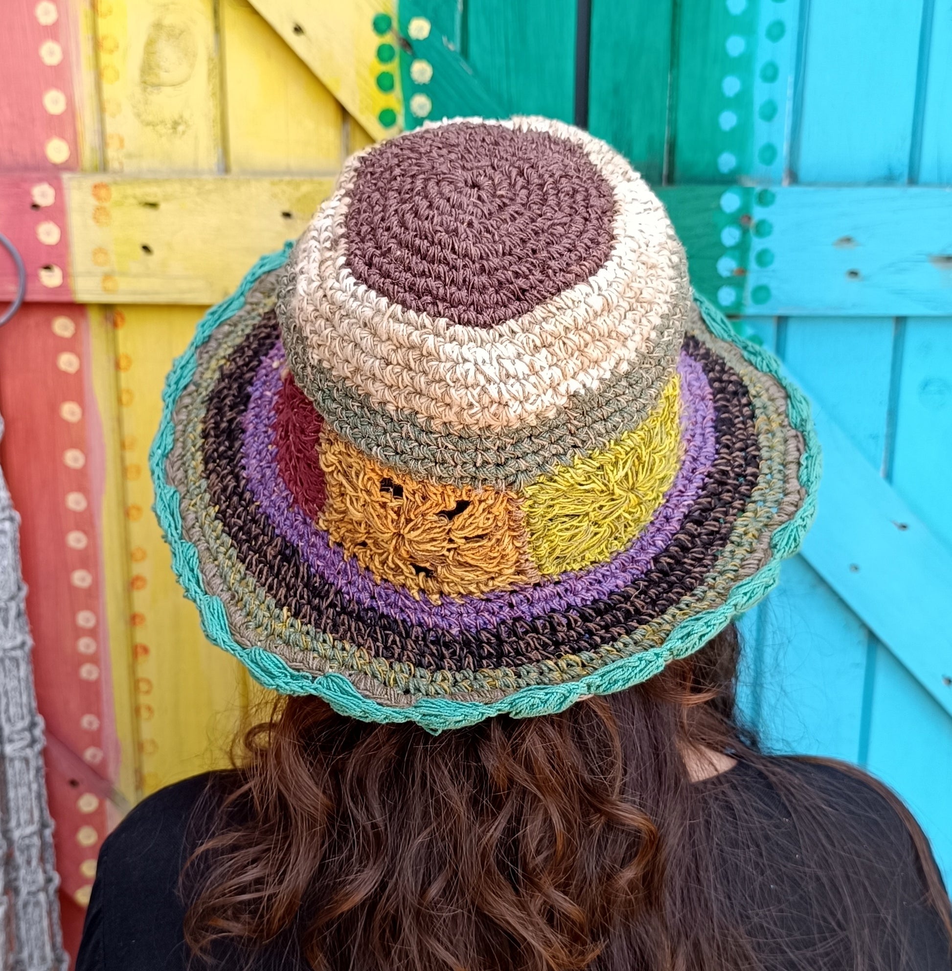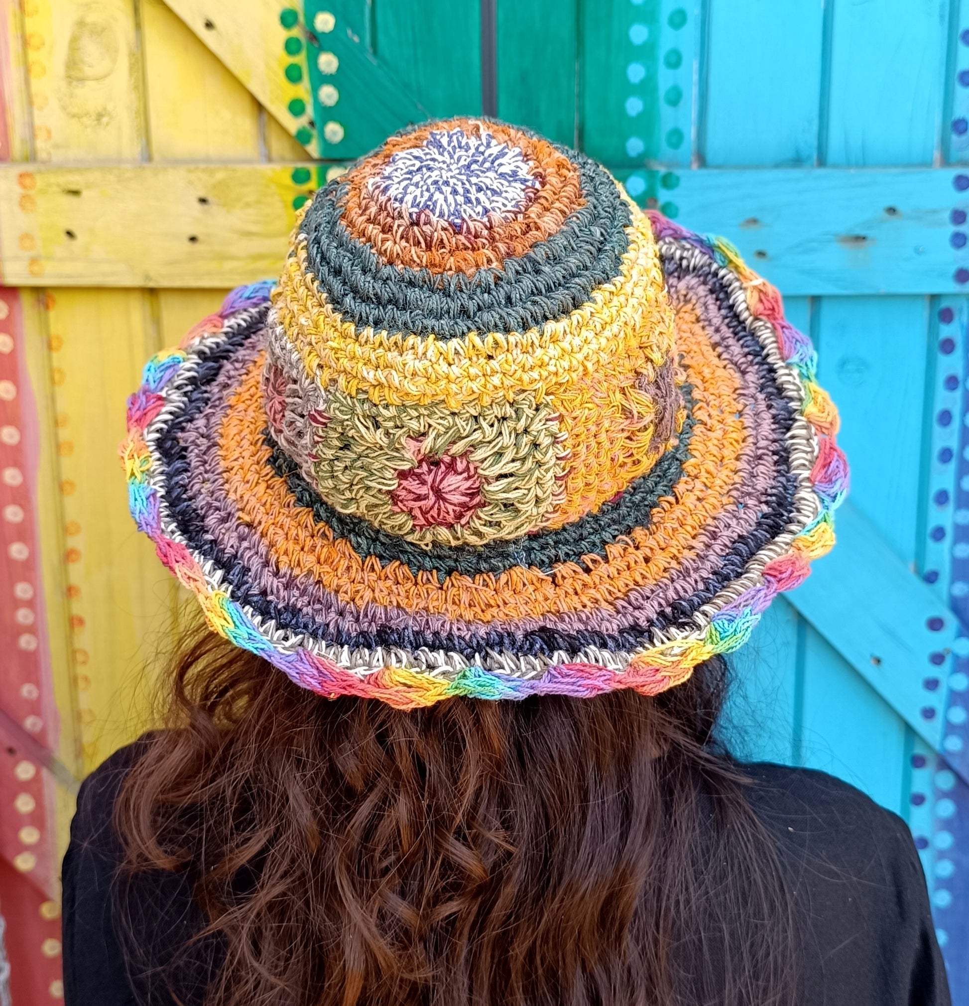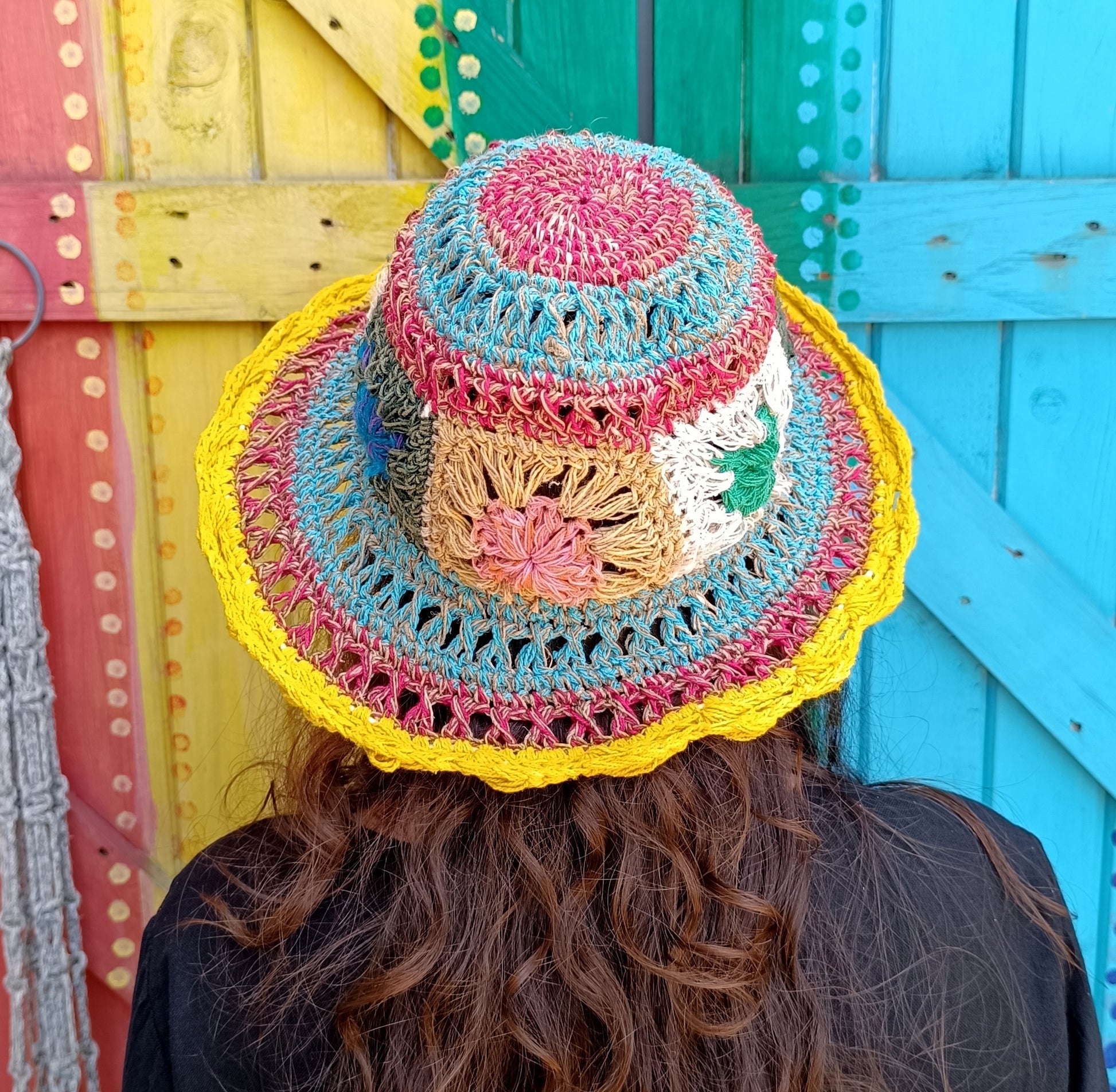 Crochet Hemp and Cotton Mix Hippie Wired Hats Colourful Flowers