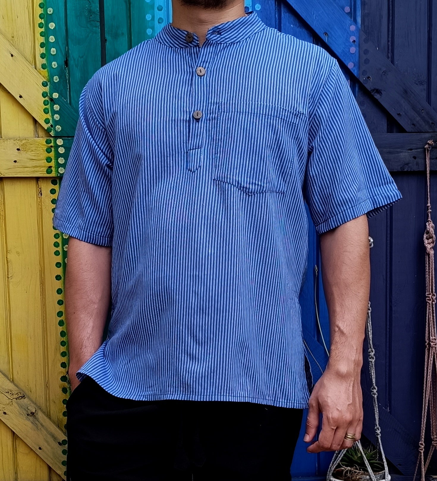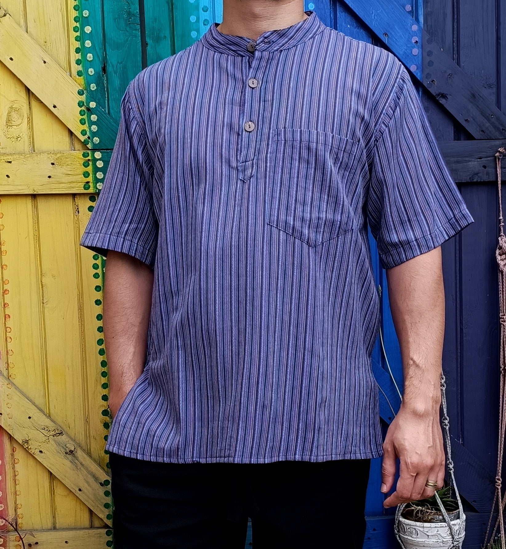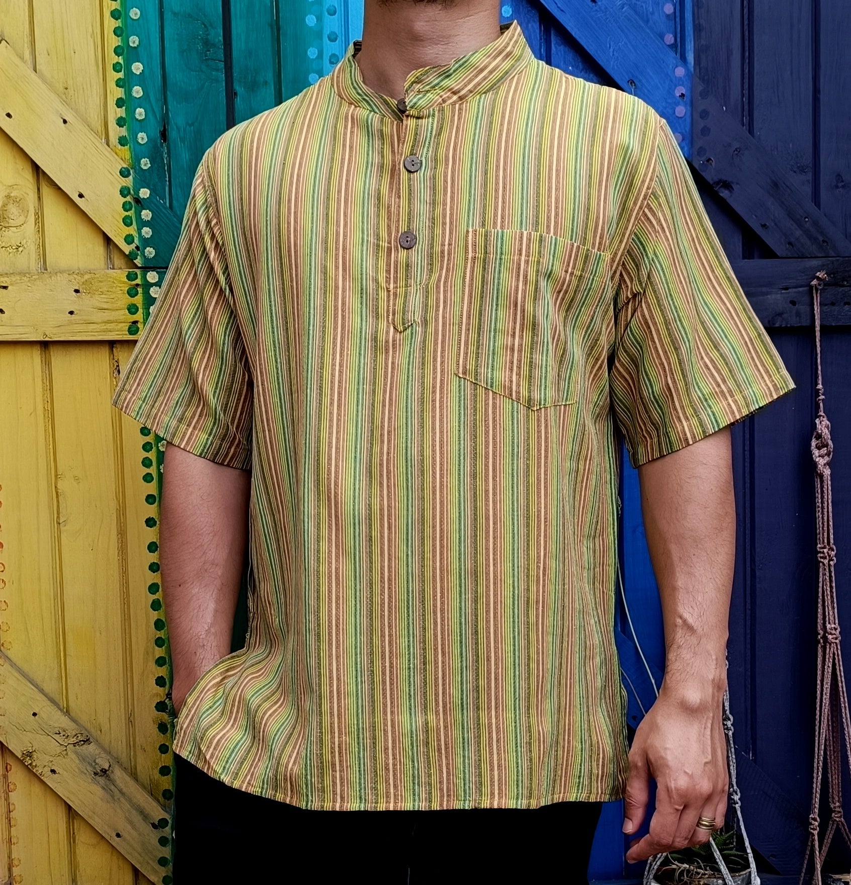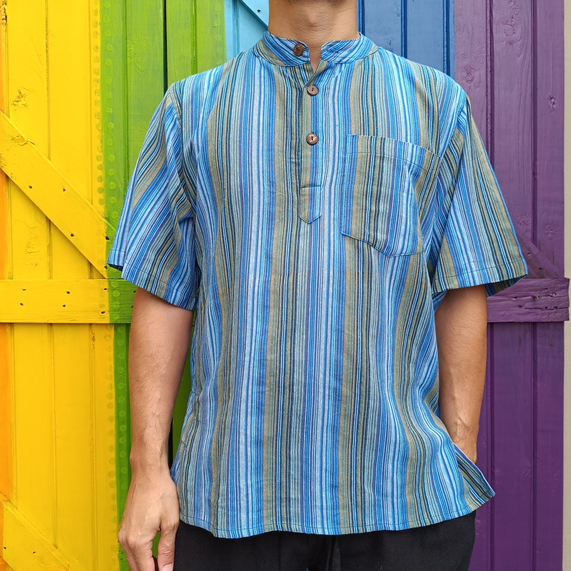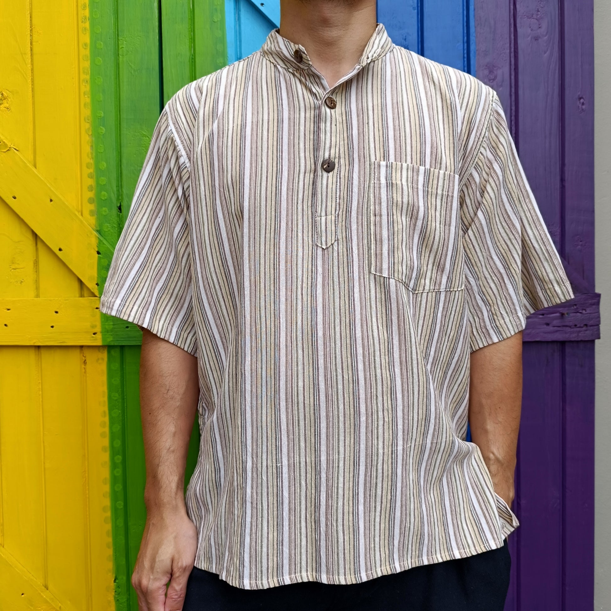 Striped Dharke Kurta three button short sleeve shirts made from 100% Light-weight Cotton.