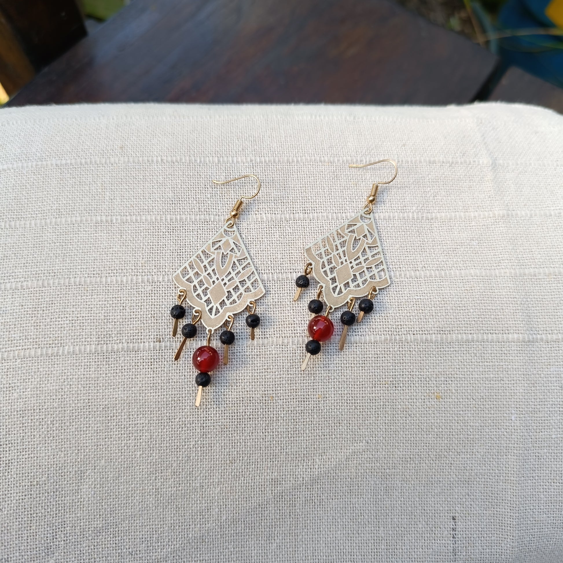 Diamond Lace Earrings with Carnelian and Lava Stone