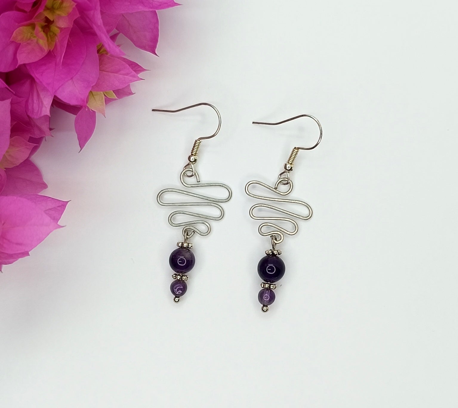 Handmade Wire Design with Amethyst Earrings
