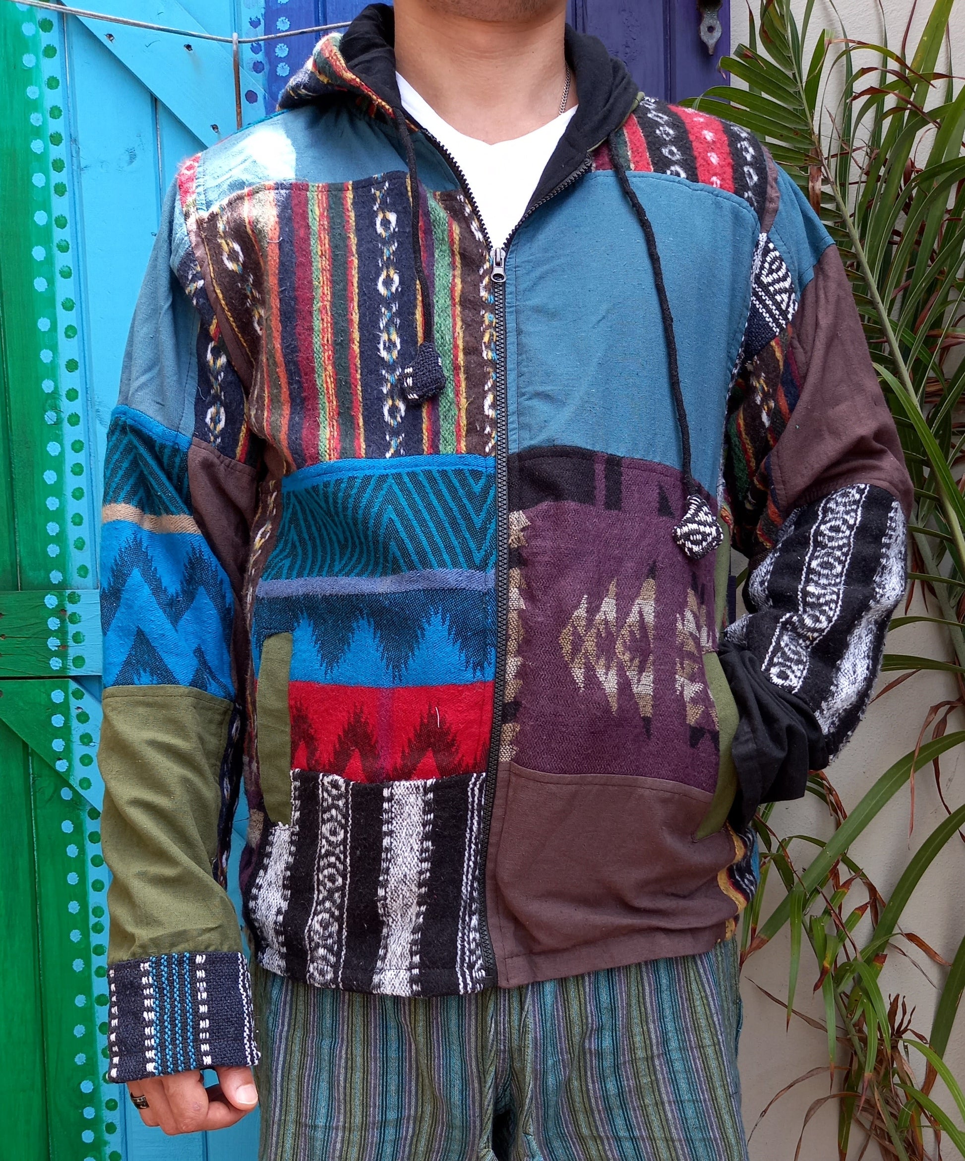 Thick Gheri zipper patchwork cotton lined hoodies made from 100% Cotton in Kathmandu, Nepal.