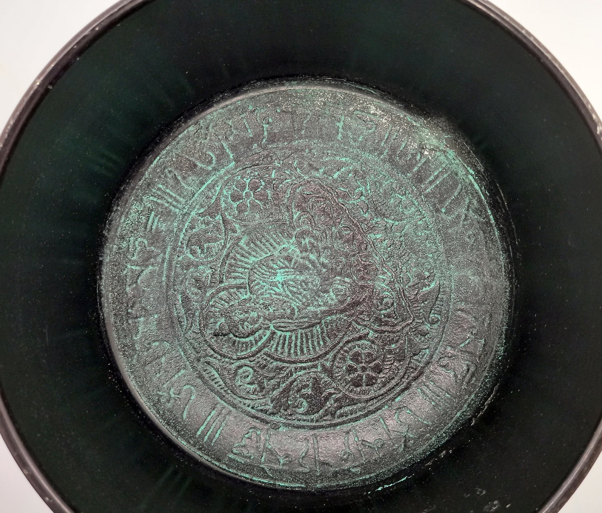 Painted Singing Bowl with Buddha engraved inside.