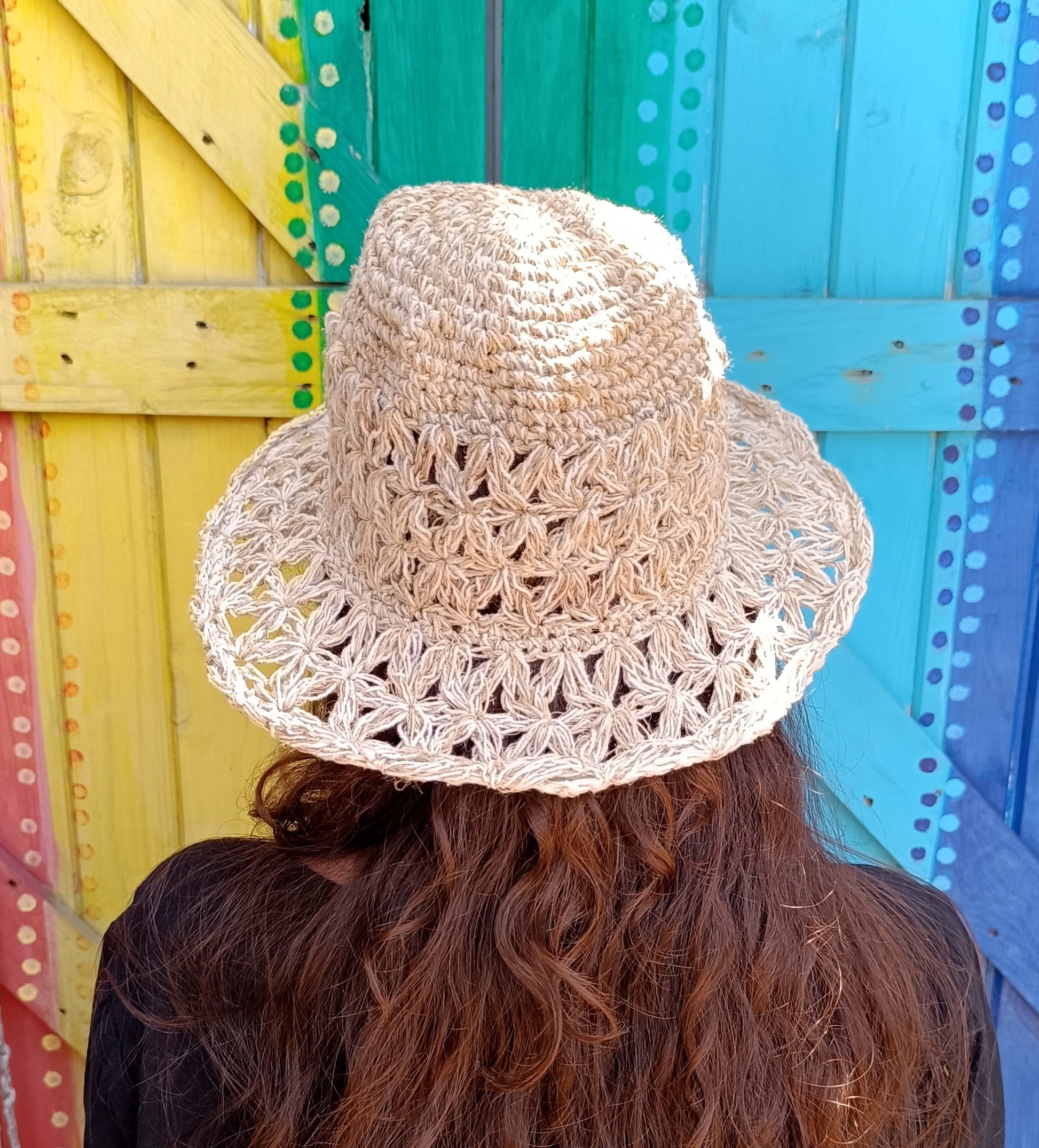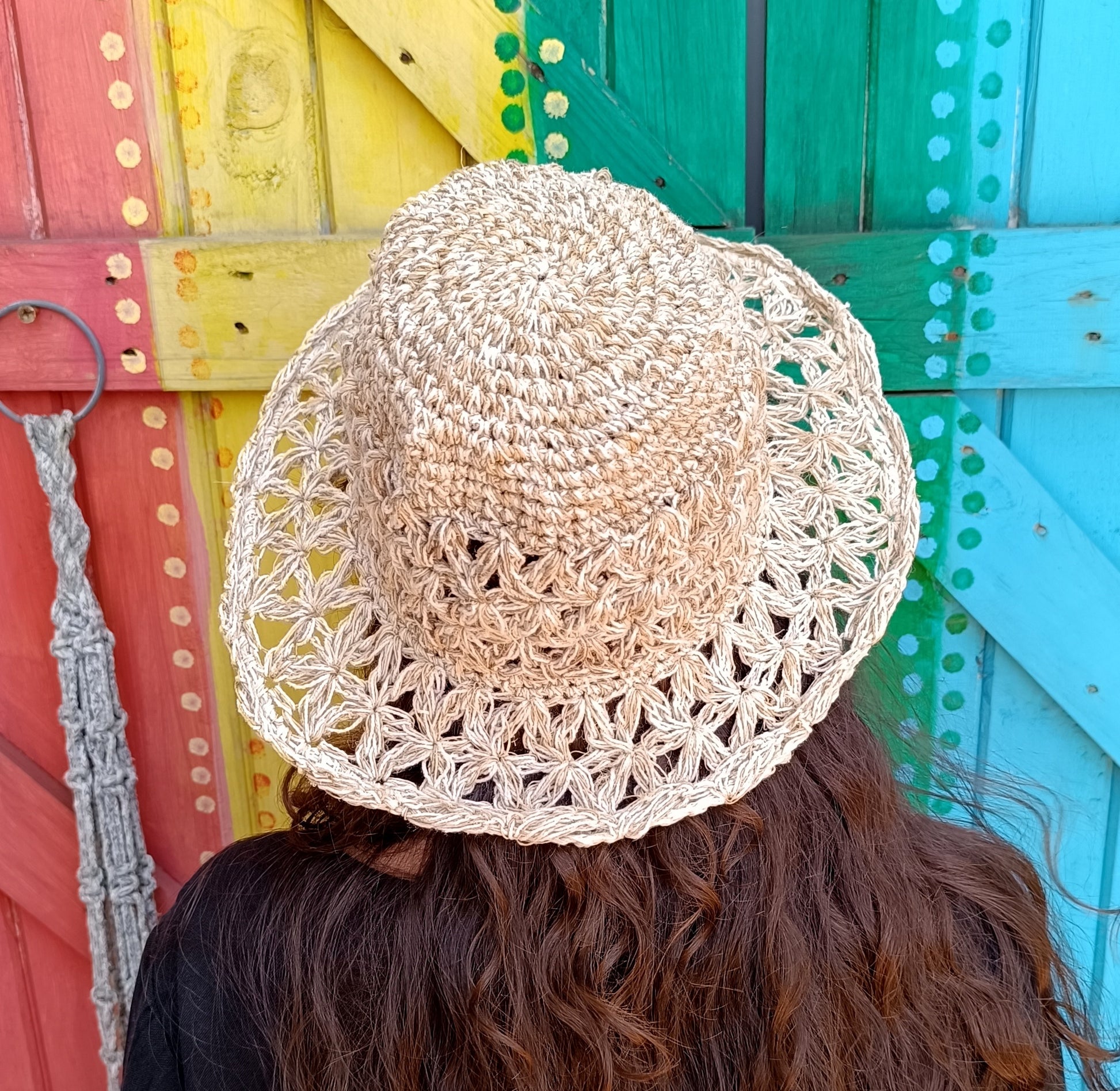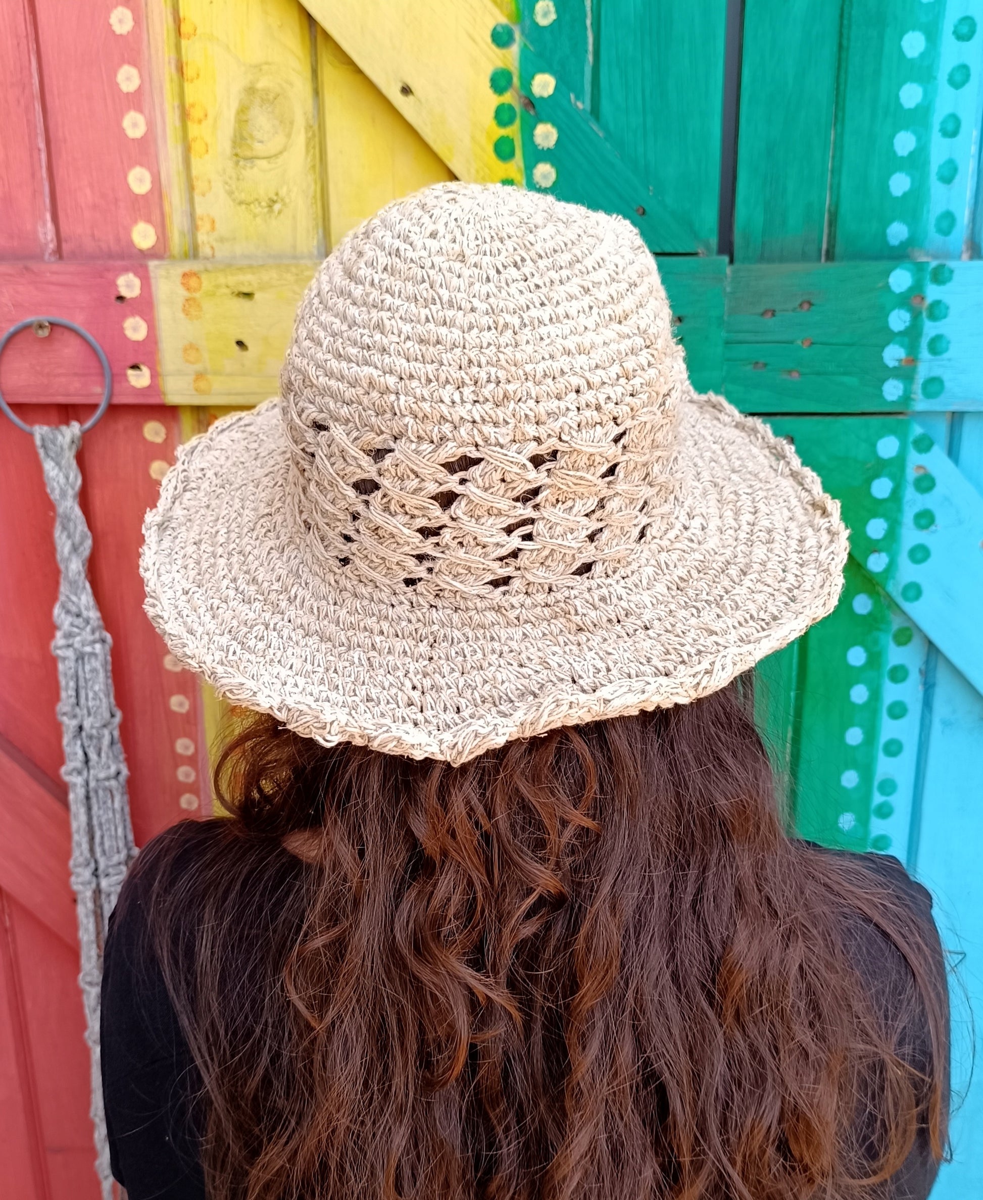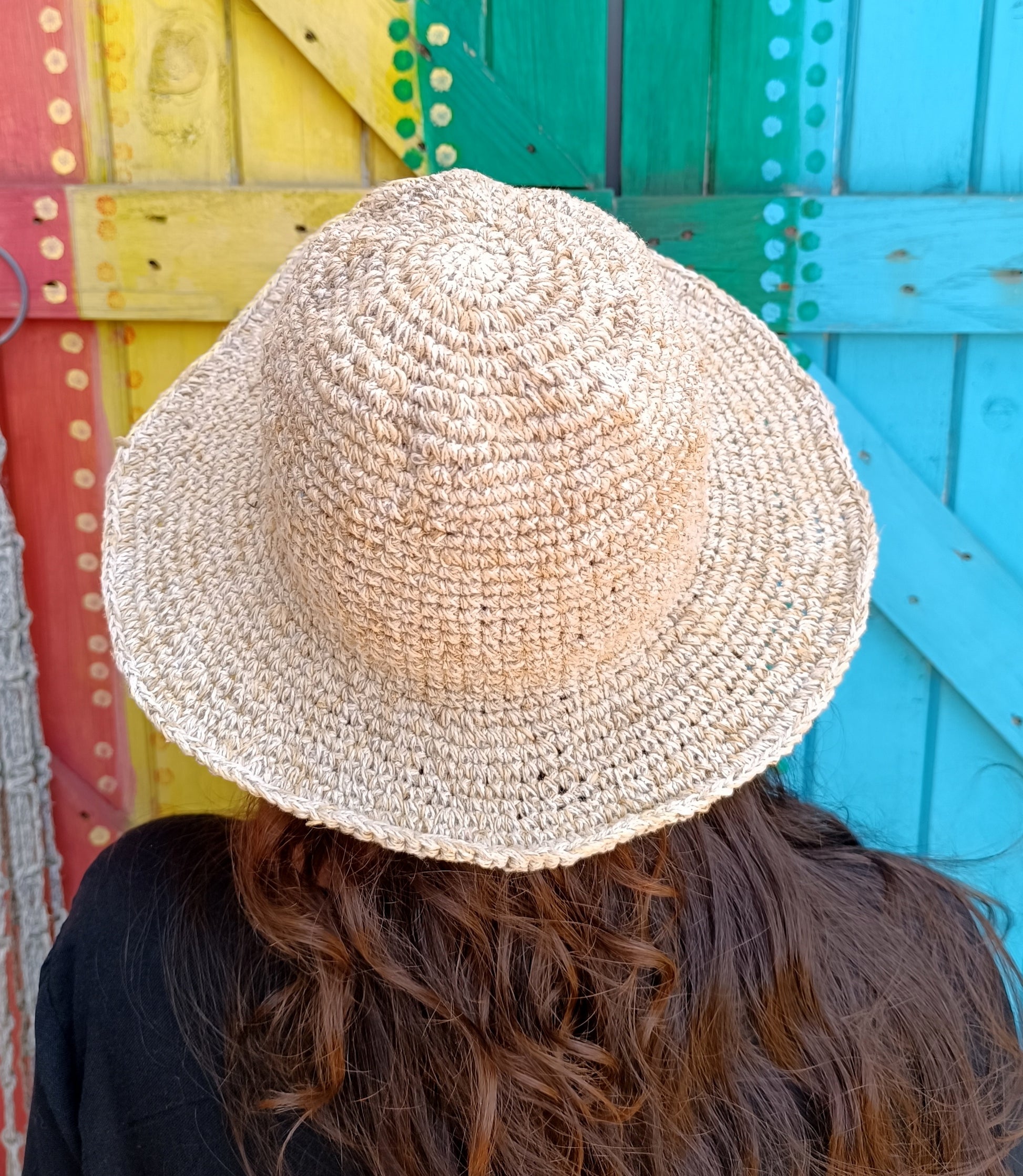 Hemp and Cotton Crochet Wired Rim Hats made in Kathmandu, Nepal.