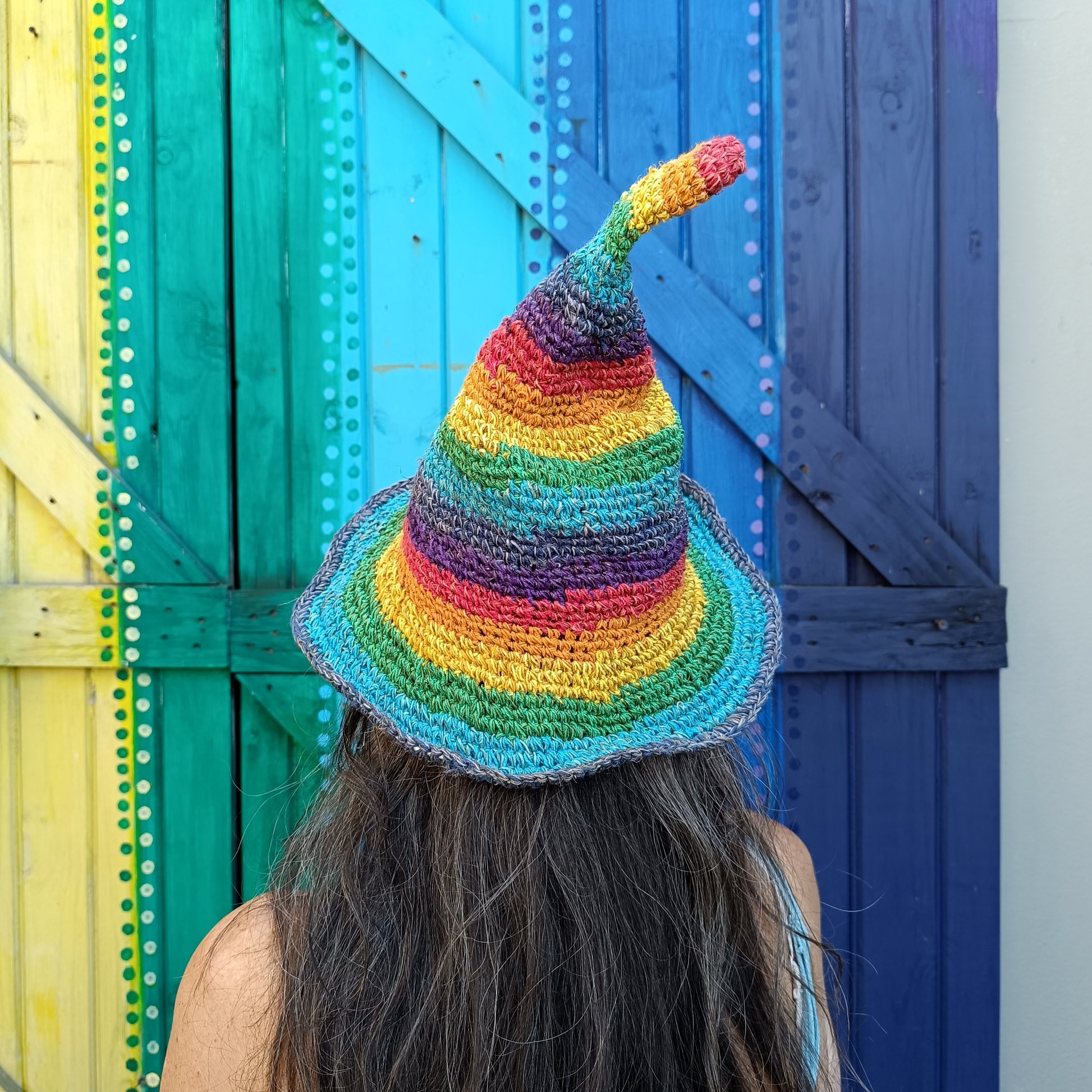 Rainbow Hemp and Cotton Mix Unisex Funky Hippie Pixie Witch Pointed Hats