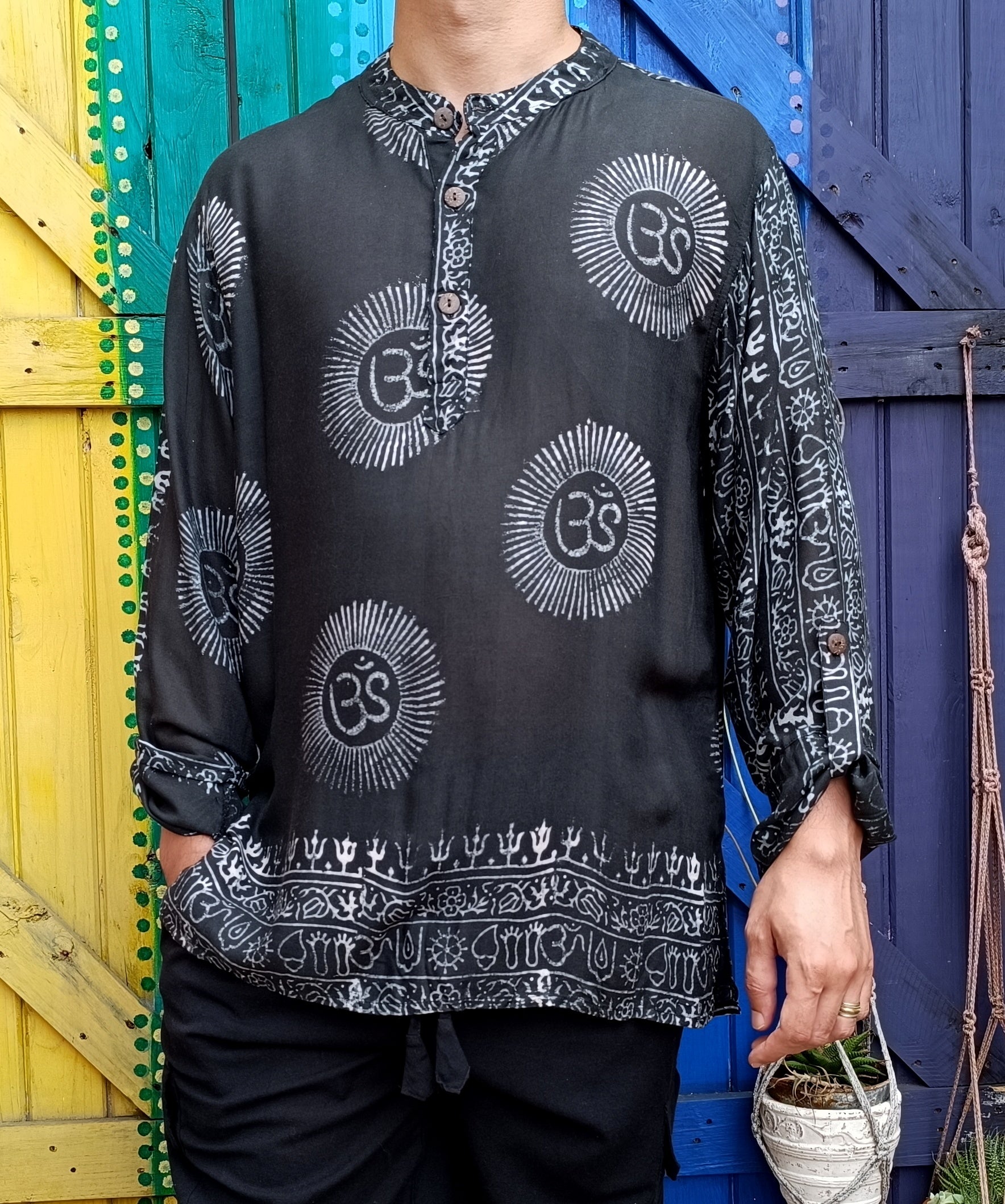 Rayon Unisex Hippie Shirts Ramnami Mantra Printed Buttoned Long Sleeve Shirt
