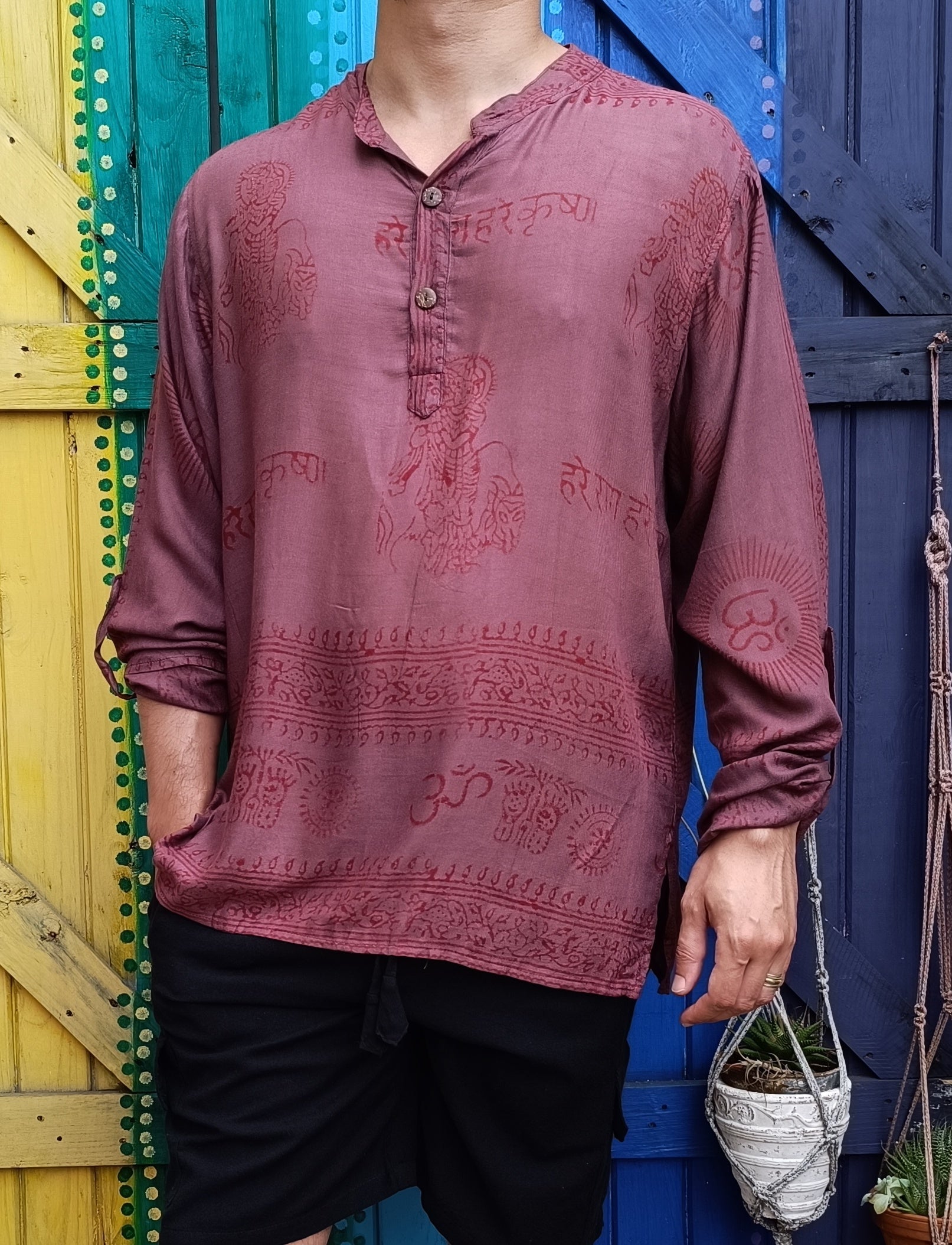Ramnami Mantra printed 3 button long sleeve shirts made from 100% Light-weight Rayon.