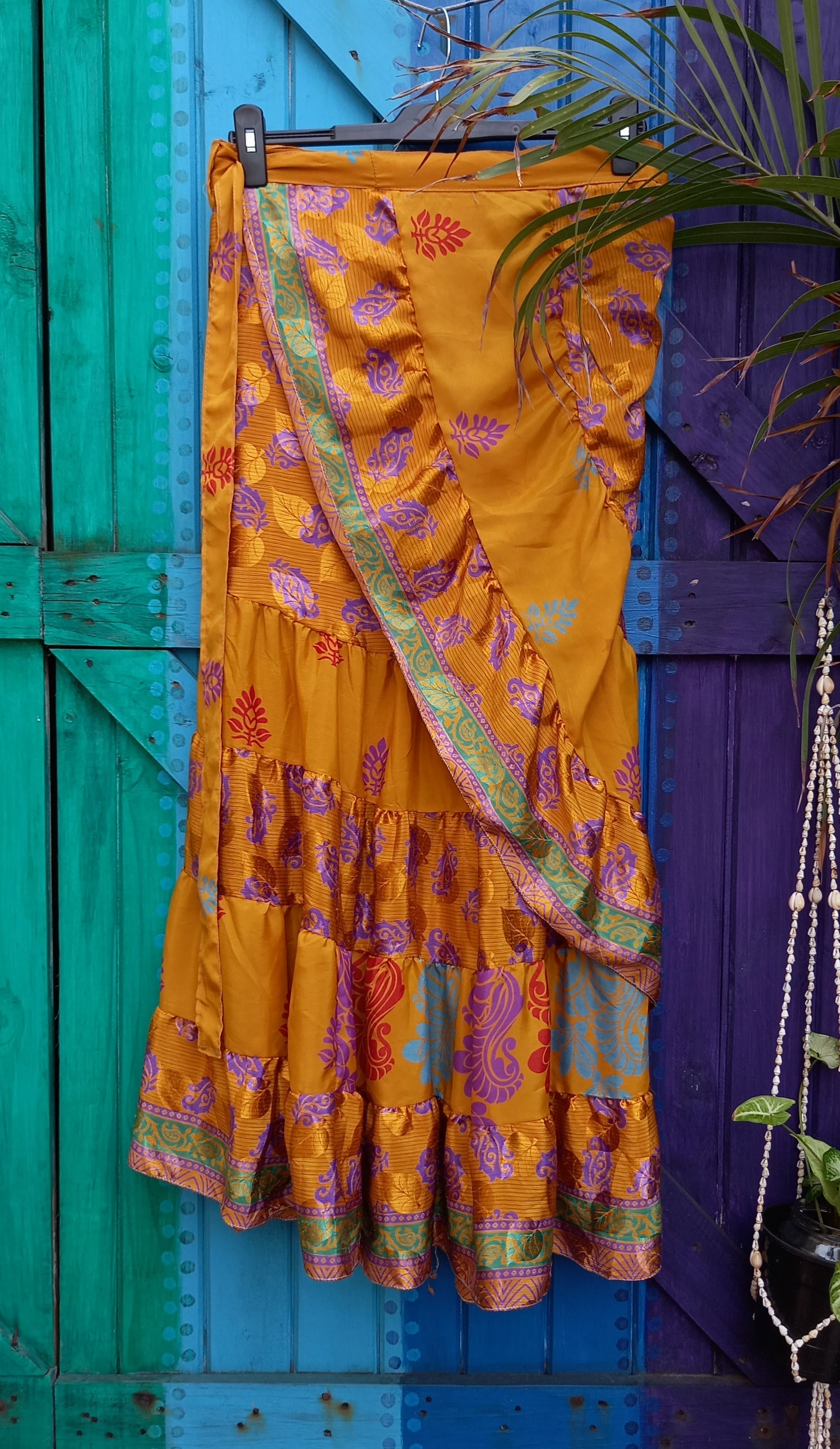 Upcycled Silk Wrap Around Flared Mexican Skirts
