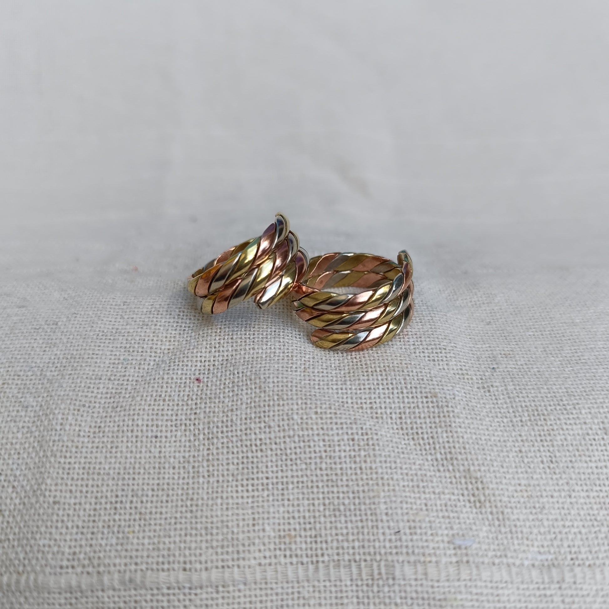 Spiral Three Metal Ring Copper Brass White Metal Ring Nepalese