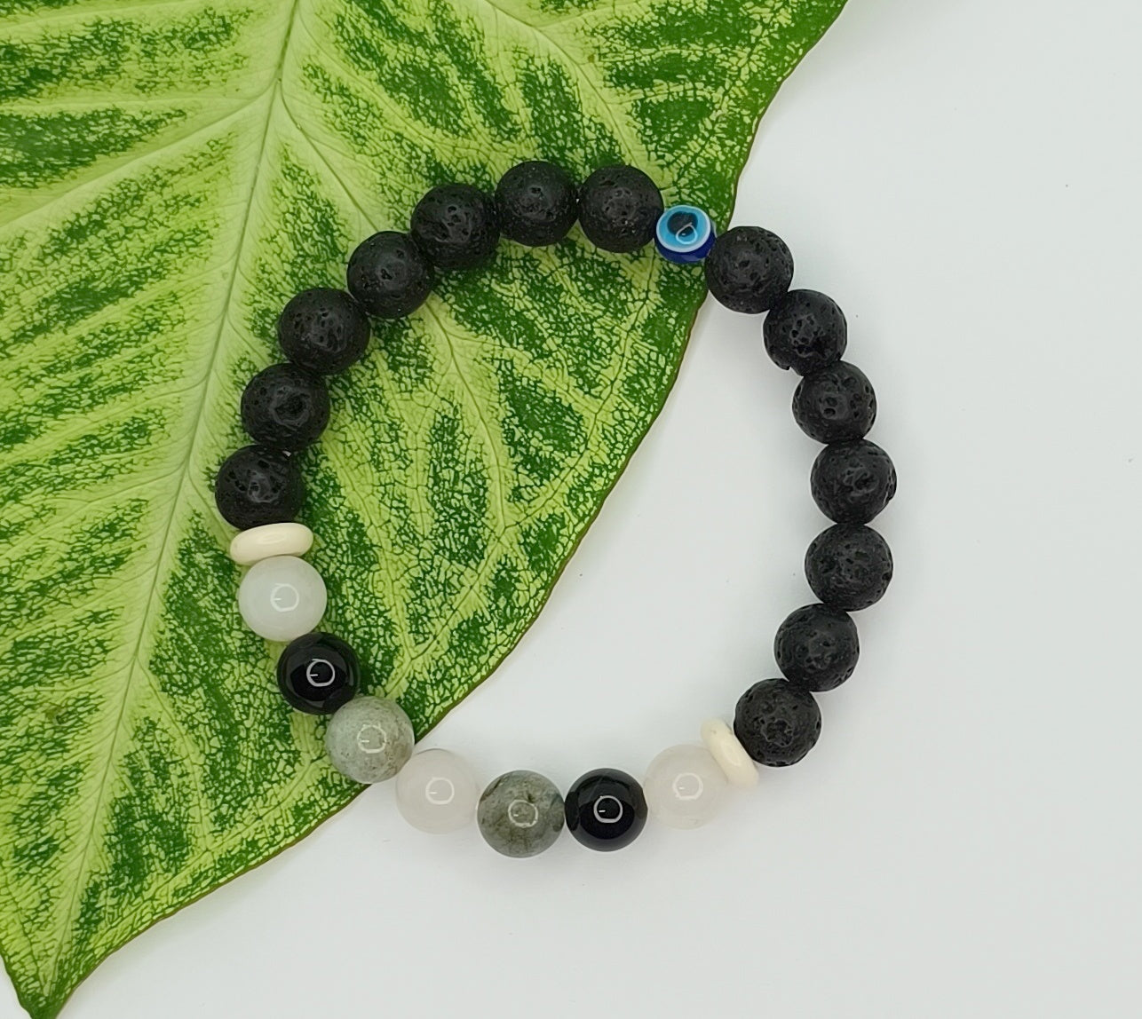Protection Strength and Grounding Healing gemstone bracelet. Made from gemstones and lava stone and an evil eye for further protection.